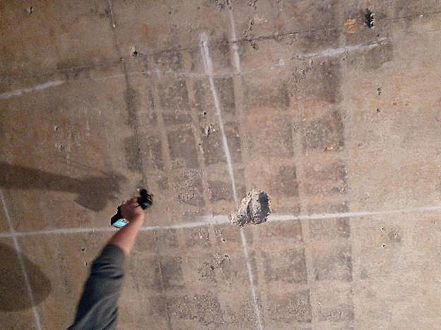 - выполнение замеров геометрии плиты на предмет отклонения от горизонтальной плоскости (прогибов);
